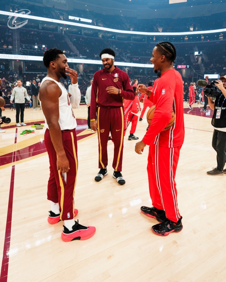 老队友碰面!骑士VS公牛赛前 米切尔&阿伦与前队友奥科罗攀谈