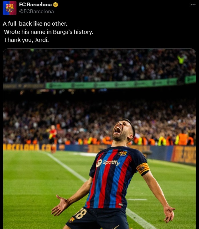2025-10-08 00:00:46巴萨致敬阿尔巴:与众不同的边后卫,在巴萨史上书写了自己的名字