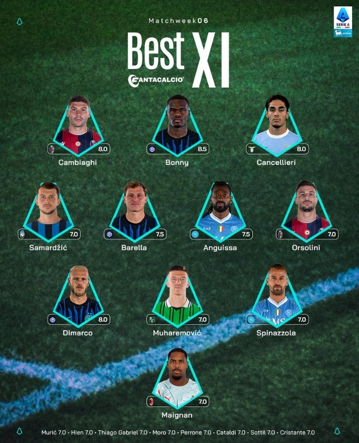2025-10-08 00:01:37意甲官方本轮最佳阵:博尼领衔国米3人入选,迈尼昂在列