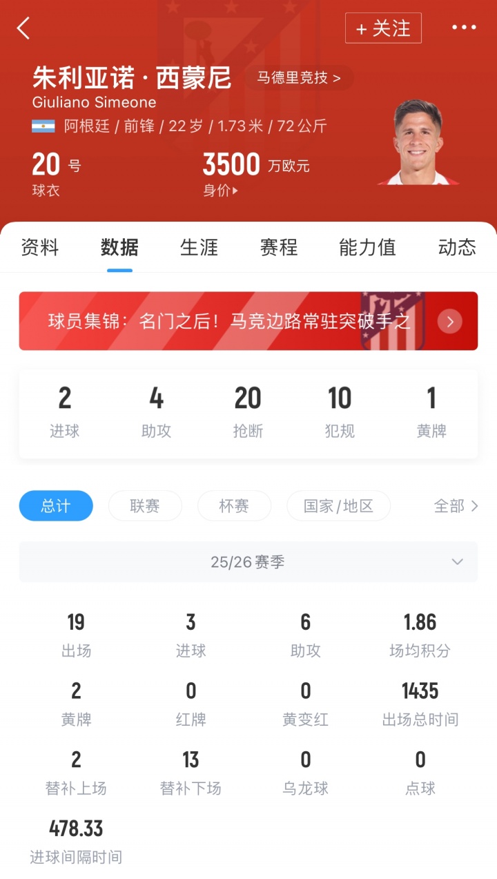 2025-11-13 00:00:19连续3场获全场最佳!罗马诺:22岁小西蒙尼将与马竞续约至2030年