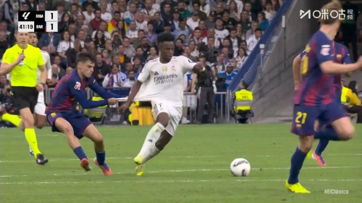 拼命拽!维尼修斯中路突破,佩德里连拉带拽吃到黄牌