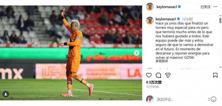 今日,纳瓦斯在社媒写道:“几天前,一场对我来说意义非凡的赛事结束了,但它远比我们所有人所期望的要提前结束。这支队伍还有提升的空间,我相信我们将来会证明这一点。现在是时候休息和充电了,这样我们才能以更强大的姿态回归!加油!”